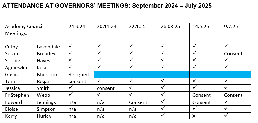 ATTENDANCE AT ACADEMY COUNCIL MEETINGS |